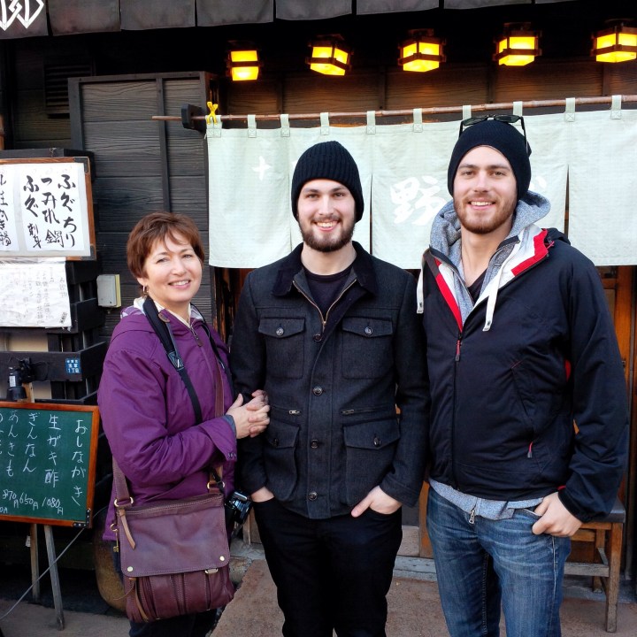 It was a long day, 22 hours in transit actually, and we got just a little sleep on the plane. Andrew arrived at the hotel in Tokyo shortly after Heidi and I had turned in for the night. But, of course, we were thrilled when he woke us up and had a brief chance to catch up on the 6 months we have been apart. He showed us his tattoo.