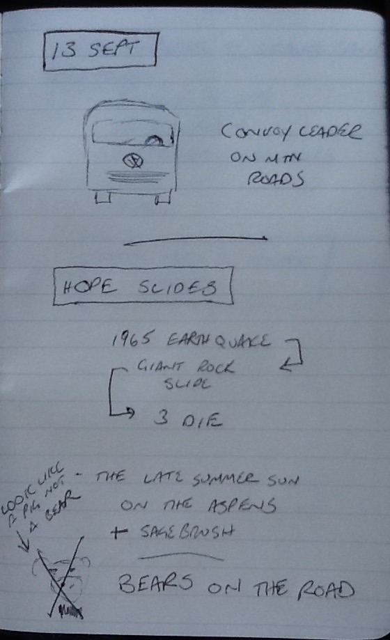 So here are the first few pages from our current trip, starting with the flight to Vancouver yesterday, and the drive to Penticton today.