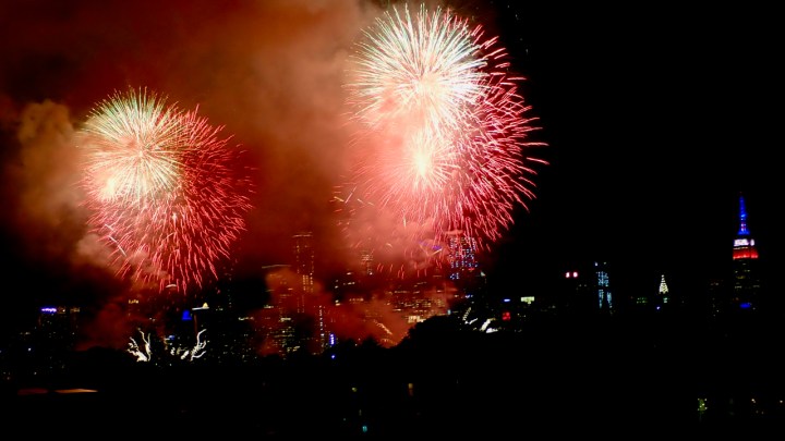 The helicopter thundering outside our condo was the giveaway. Macy’s secret fireworks location would be on the Hudson River tonight. Instead of one big show on 4 July, there are a series of smaller blasts all week.