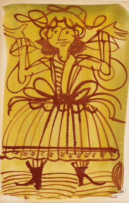 Lot #771, “Personnage bras levés” by André Derain was shown on the screen. The auctioneer announced that absentee bids had been placed on the item, and that the bidding would start with these. She opened at $2,000, and I was so disappointed.
